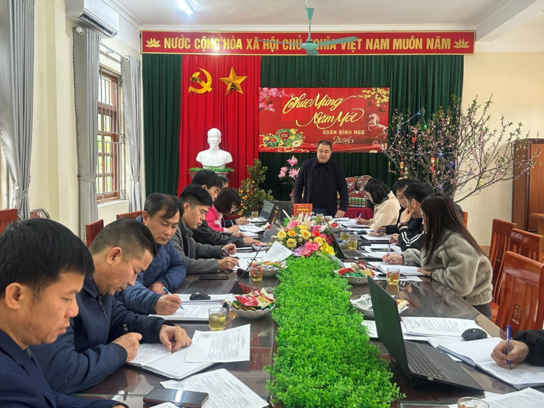 Kết luận phiên họp, đồng chí Hoàng Văn Hội, Phó Bí thư Đảng ủy, Chủ tịch UBND xã đề nghị: các phòng chuyên môn ban tiếp tục bám sát chương trình công tác tháng 2 chuẩn bị tốt cho công tác ra quân đầu xuân - Tết trồng cây, ngày hội Biên Phòng toàn dân, công tác tuyển quân, chuẩn bị chu đáo các điều kiện phục vụ bầu cử đại biểu Quốc hội và HĐND các cấp nhiệm kỳ 2026–2031; giữ vững quốc phòng – an ninh, tạo nền tảng vững chắc để hoàn thành thắng lợi các nhiệm vụ phát triển kinh tế – xã hội của xã trong thời gian tới./.