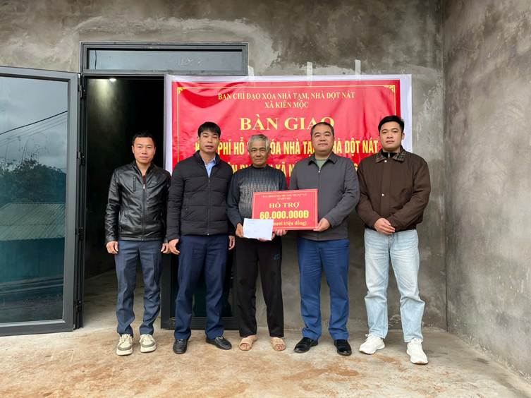 Bàn giao kinh phí hỗ trợ xoá nhà tạm, nhà dột nát trên địa bàn xã Kiên Mộc năm 2025-2026