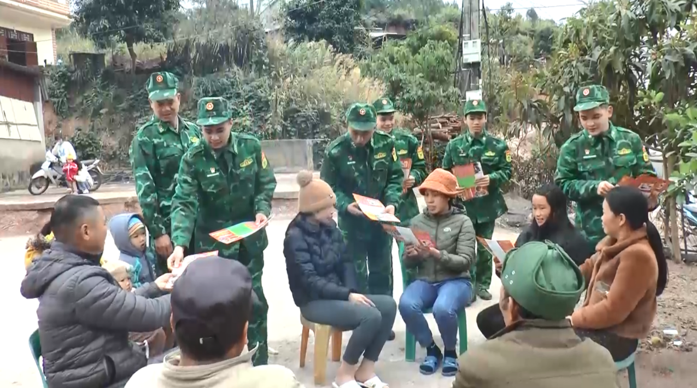 Cán bộ chiến sỹ Đồn Biên phòng Chi Lăng tuyên truyền vệ sinh môi trường cho nhân dân thôn Bản Chắt