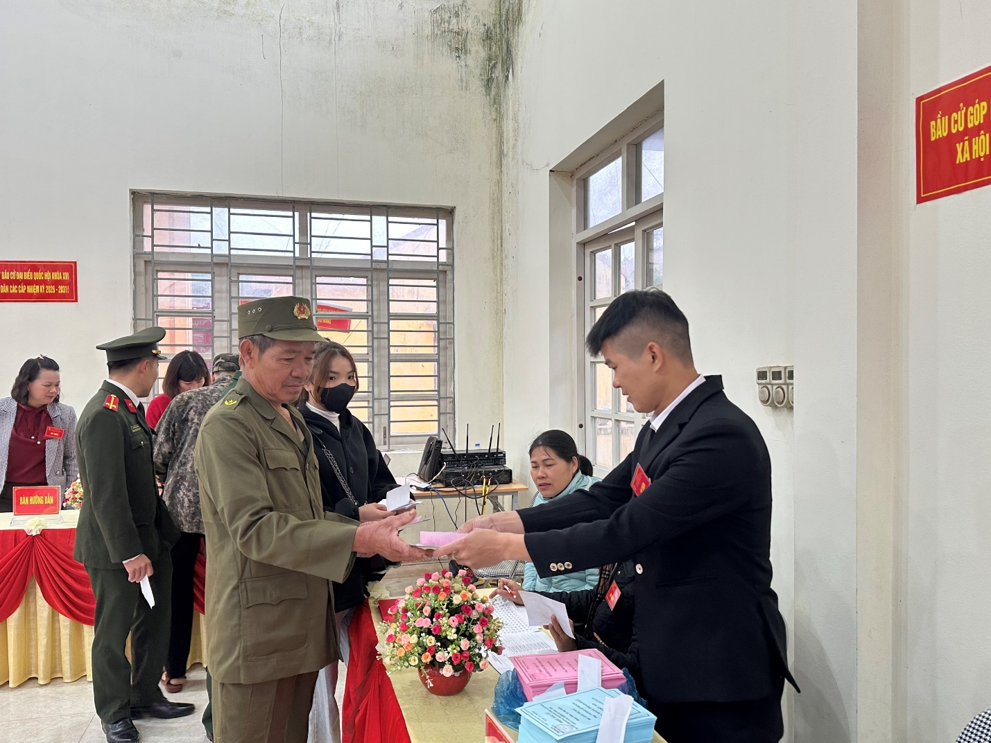 Cử tri nhận phiếu tại bàn phát phiếu