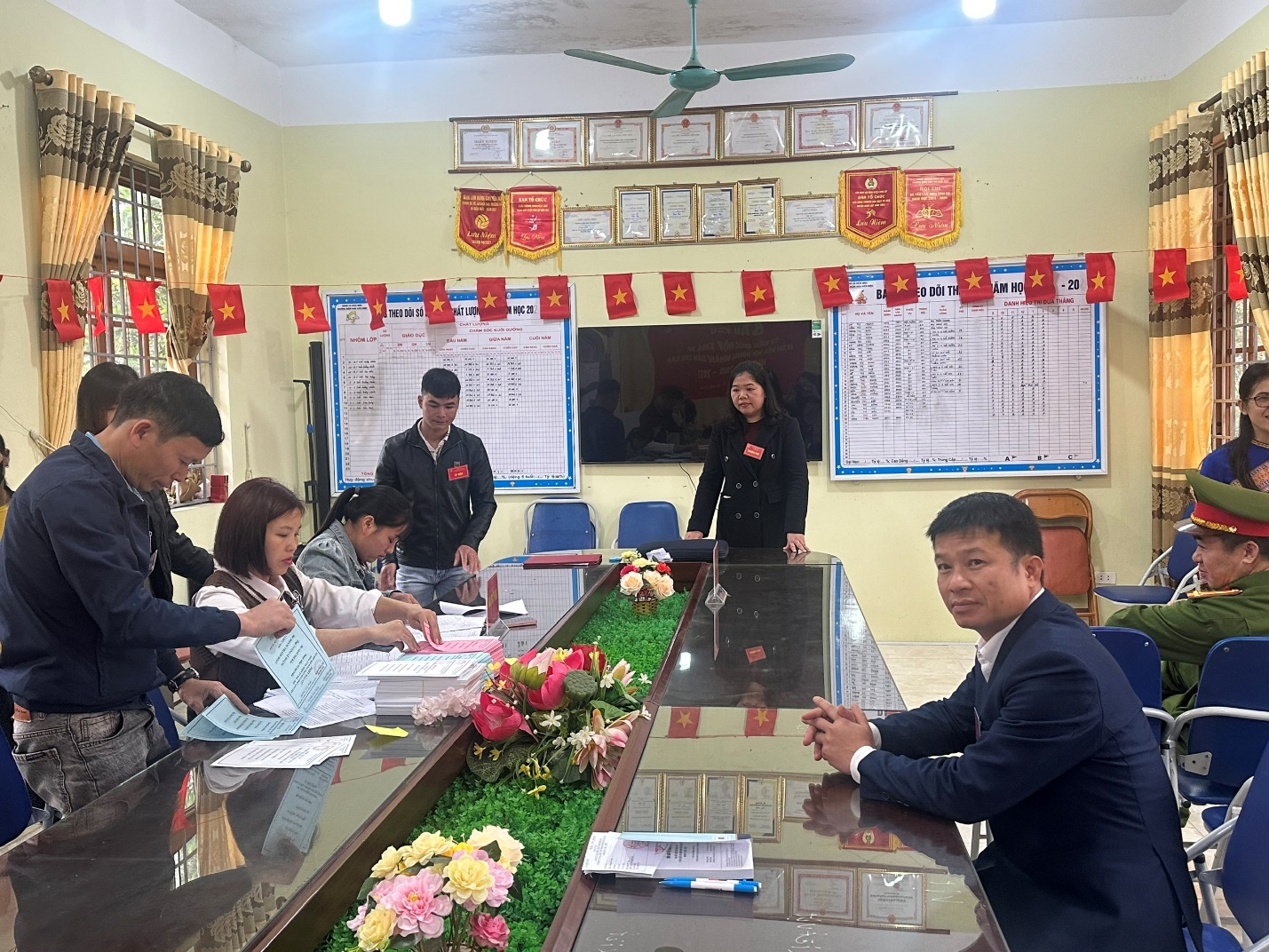 Trong không khí trang nghiêm, dân chủ, sau nghi thức chào cờ, đại diện tổ bầu cử đã công nố lý do và thông qua nội quy phòng bỏ phiếu, đồng thời tiến hành kiểm tra, niêm phong hòm phiếu trước sự chúng kiến của các đại biểu và cử tri. Công tác tổ chức tại khu vực được chuẩn bị chu đáo đảm bảo đúng quy định của luật bầu cử đại biểu Quốc hội và đại biểu HĐND các cấp. Khu vực bỏ phiếu được trang trí, trang nghiêm với cờ hoa rực rỡ; pa nô, danh sách cử tri, danh sách và tiểu sử tóm tắt của những người ứng cử được niêm yết đầy đủ tuận tiện dể cử tri nghiên cứu trước khi thực hiện quyền bầu cử.