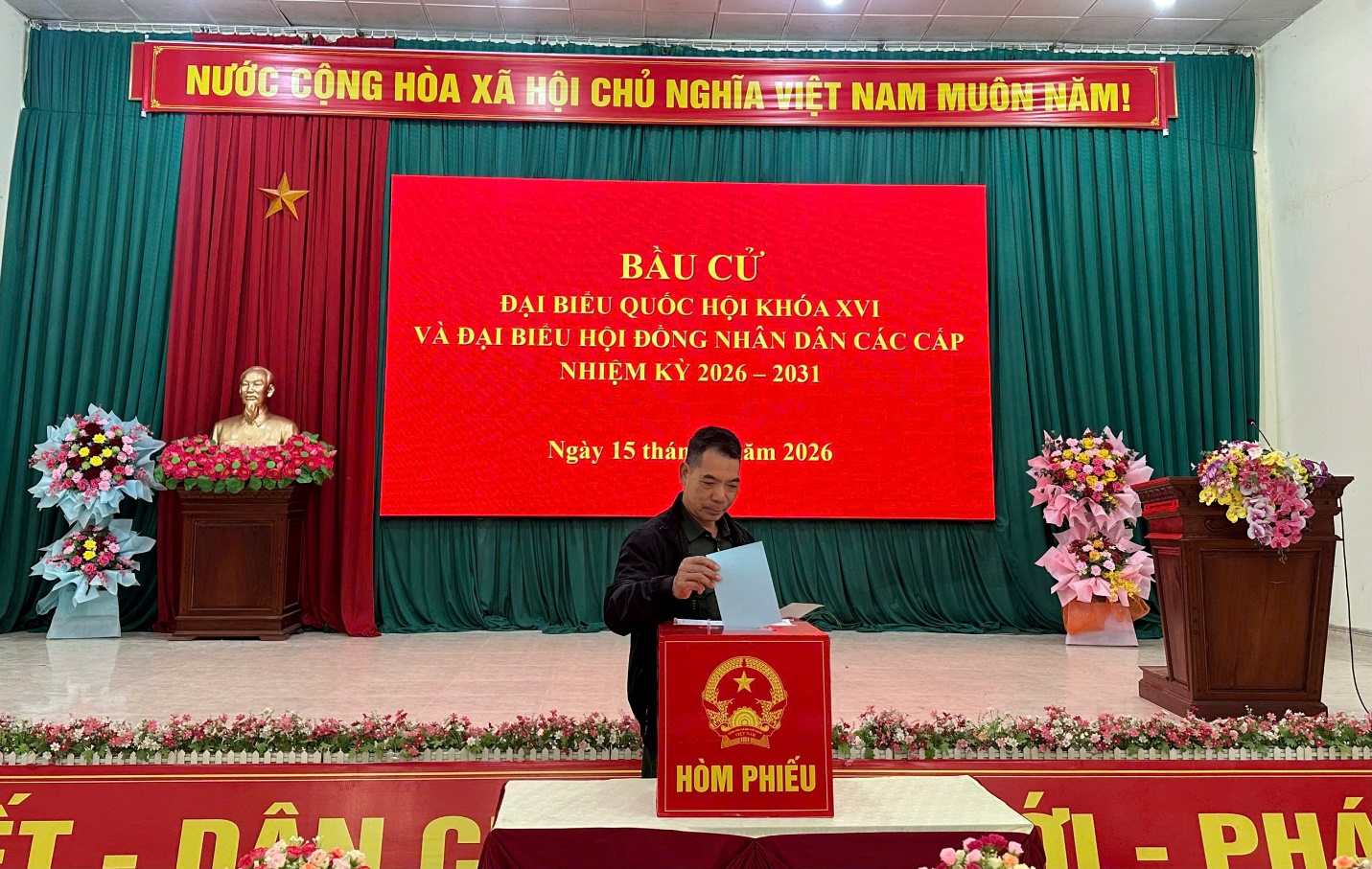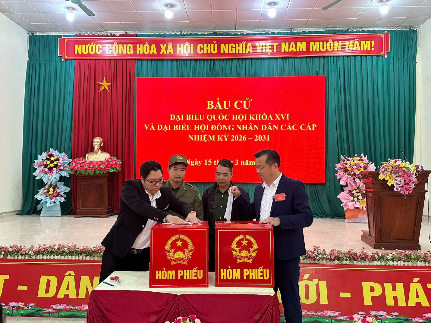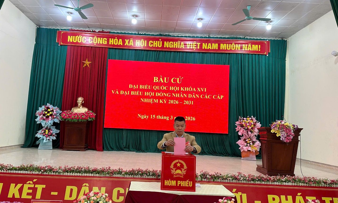 Ngay sau lễ khai mạc, đồng chí Hoàng Thị Kim Hoạt - Bí thư Đảng ủy, chủ tịch HĐND xã, trưởng Ban chỉ đạo bầu cử xã, lãnh đạo Đảng ủy, HĐND, UBND, Ủy ban MTTQ xã cùng đông đảo cử tri đã trực tiếp thực hiện quyền công dân tham gia bỏ lá phiếu đầu tiên bầu đại biểu Quốc hội khóa XVI và đại biểu HĐND các cấp nhiệm kỳ 2026 – 2031.