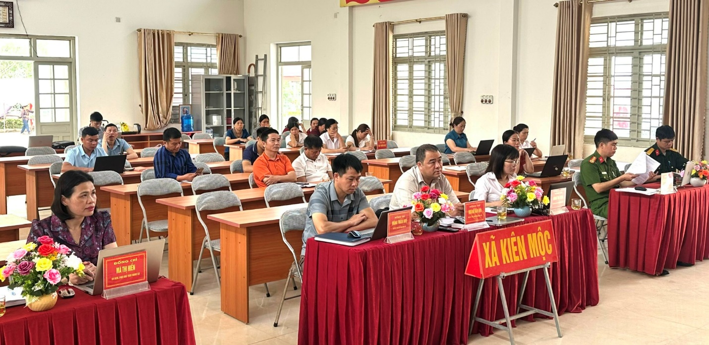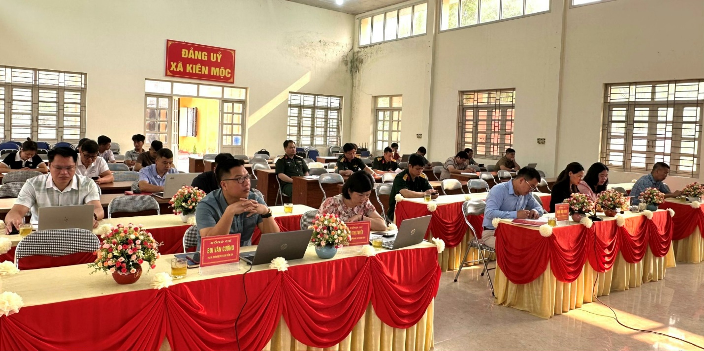 Xã Kiên Mộc hội nghị được tổ chức tại 02 điểm cầu gồm; điểm cầu Đảng ủy xã và điểm cầu UBND xã. Tham dự hội nghị, tại điểm cầu Đảng ủy xã có đồng chí Hoàng Thị Kim Hoạt – Bí thư Đảng ủy, Chủ tịch HĐND xã; đồng chí Nông Đức Vượng – Phó bí thư Thường trực Đảng ủy; Dự hội nghị tại điểm cầu UBND xã có đồng chí Hoàng Văn Hội – Phó bí thư Đảng ủy, Chủ tịch UBND xã; các đồng chí lãnh đạo Đảng ủy, HĐND, UBND, ủy ban MTTQ Việt Nam xã; lực lượng vũ trang, các ban, ngành, đoàn thể, Bí thư chi bộ, trưởng các thôn trên địa bàn xã.