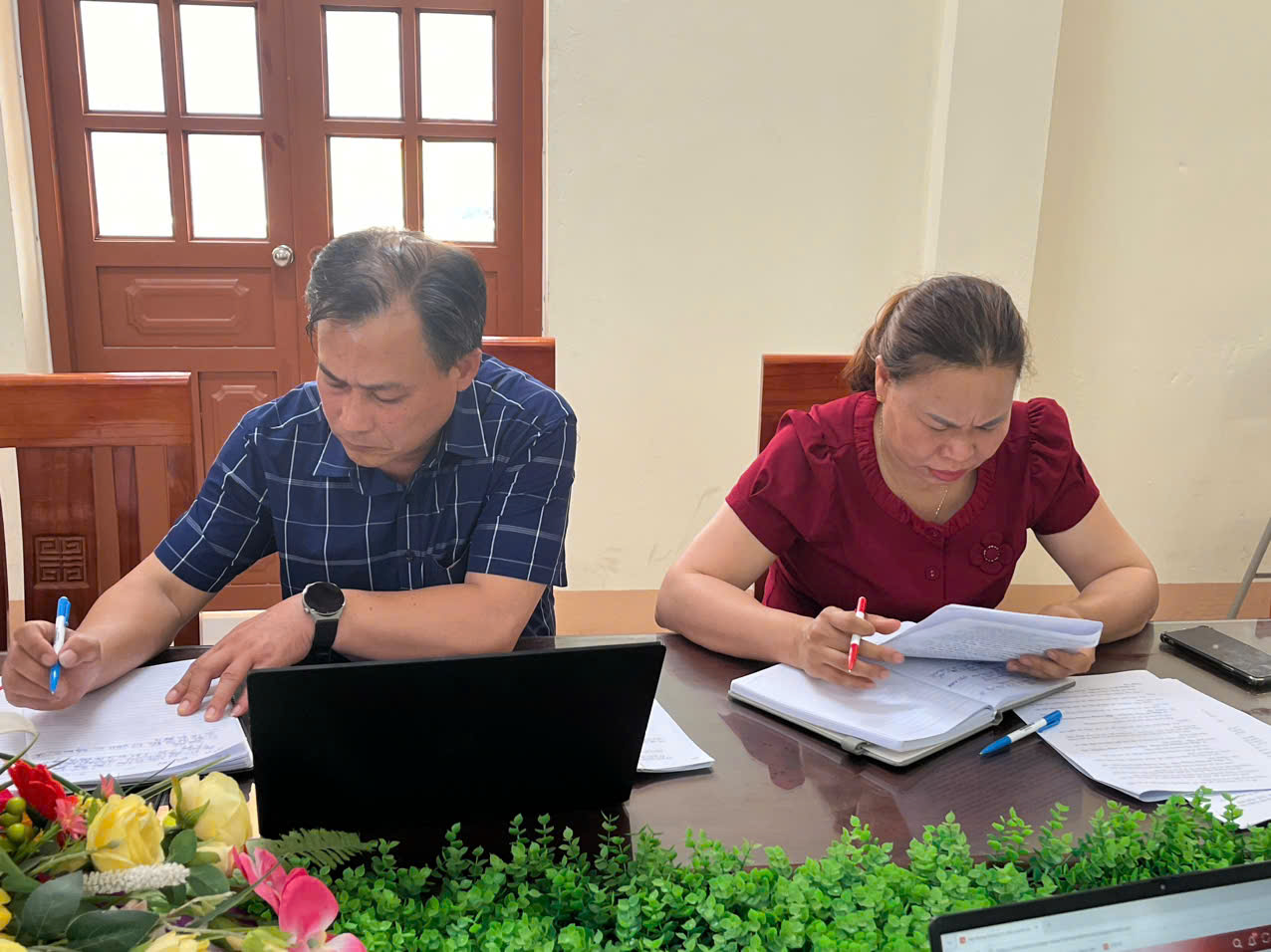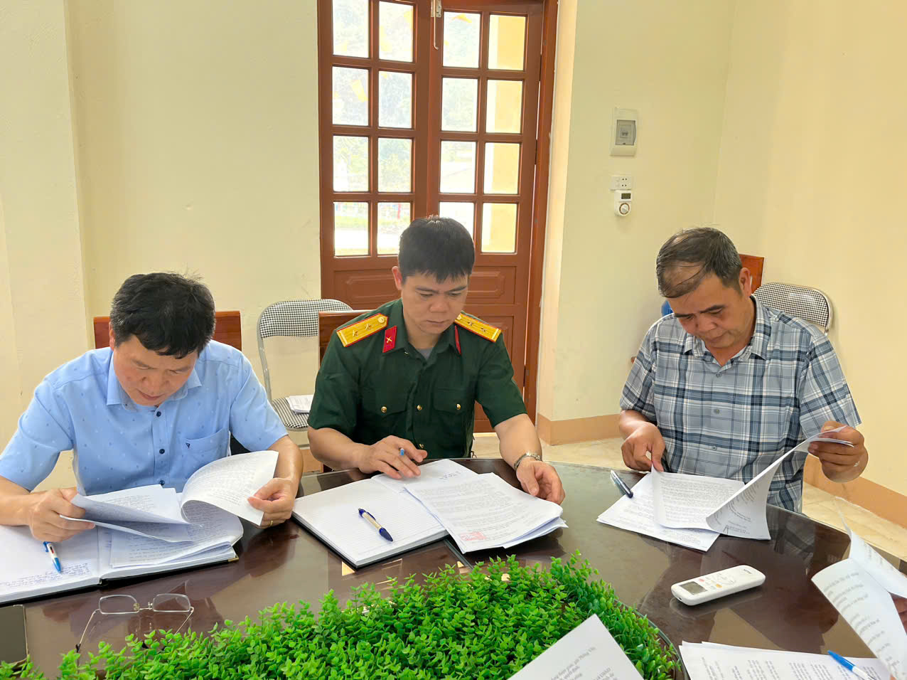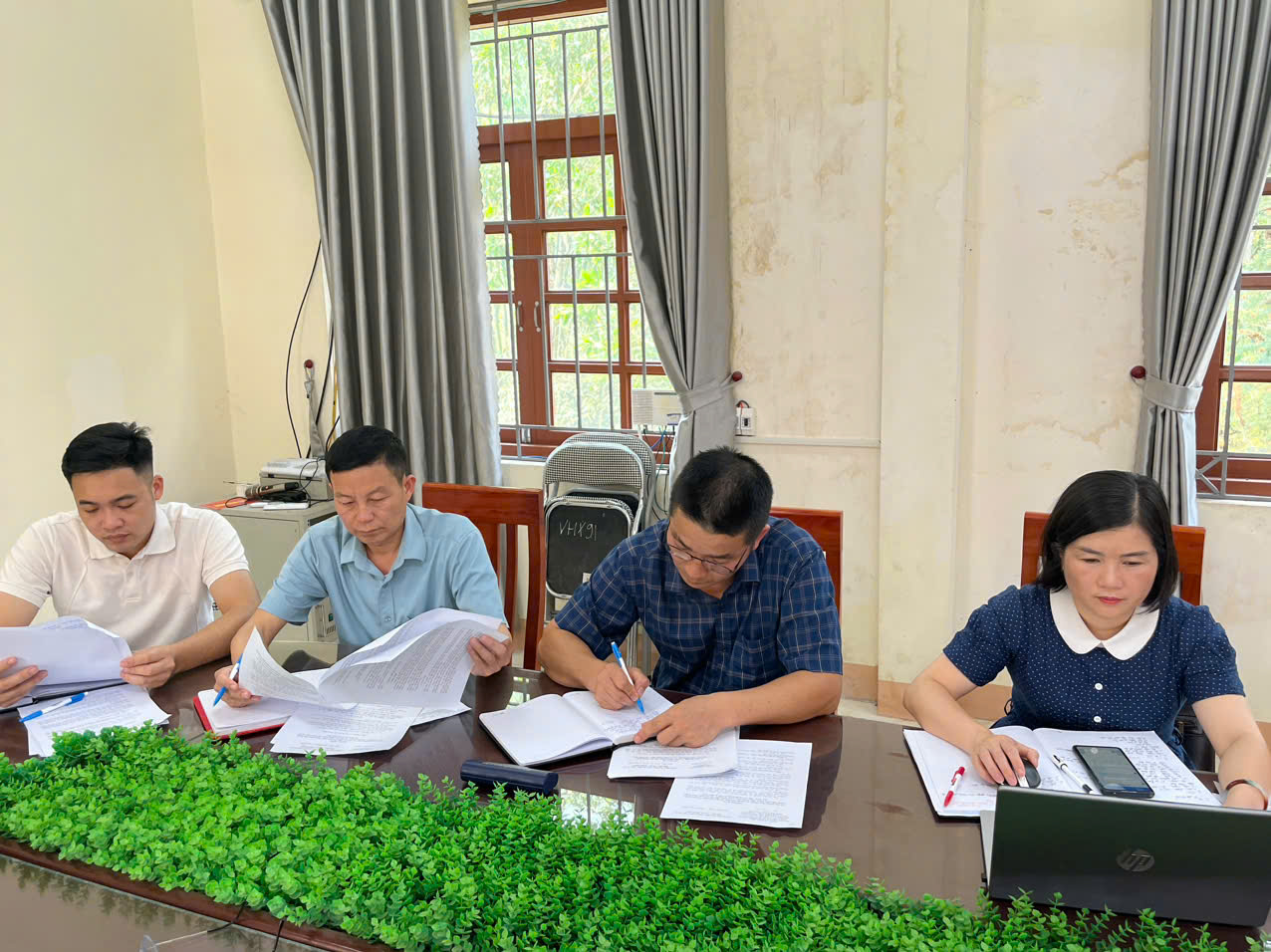 Các đồng chí trong Ban tổ chức thảo luận, đóng góp ý kiến