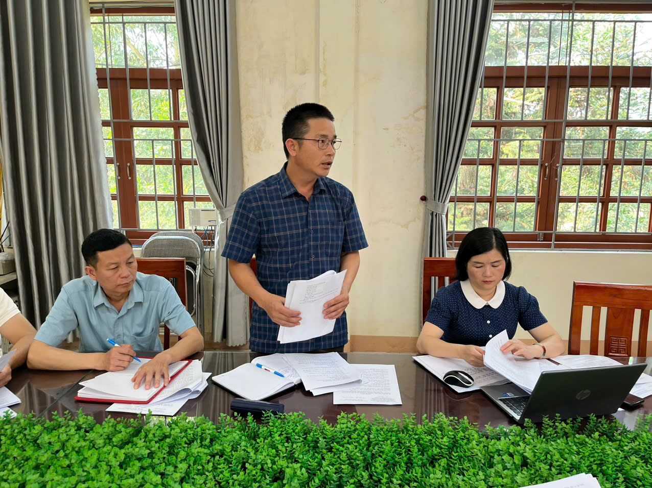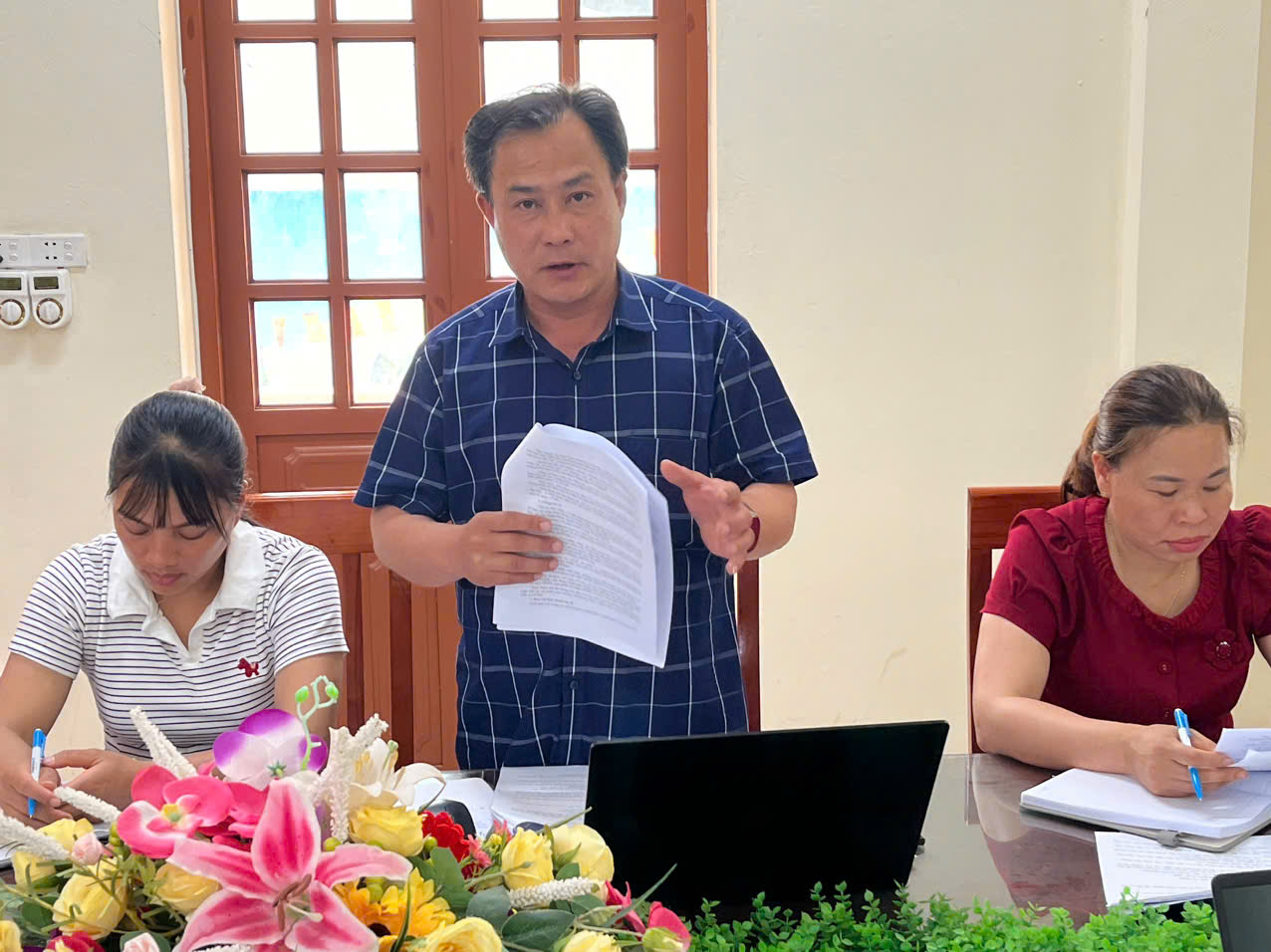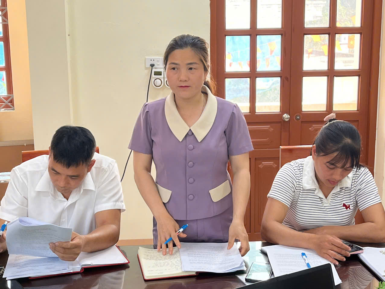 Đồng chí Mã Thị Hiển – Phó chủ tịch UBND xã phát biểu kết luận tại cuộc họp