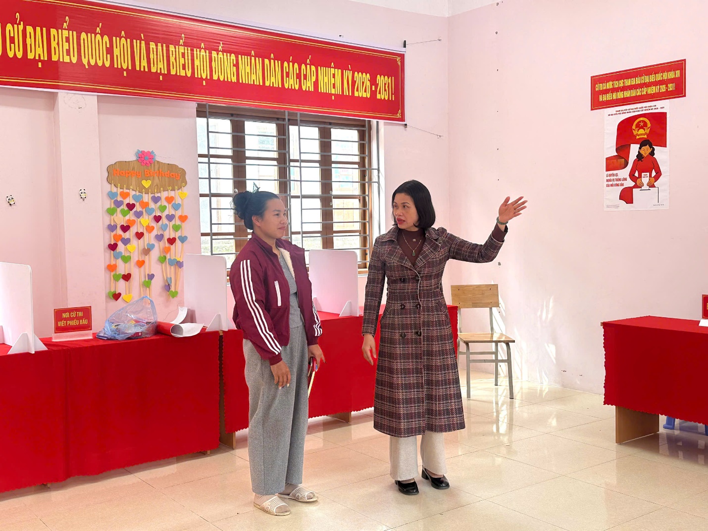 Qua kiểm tra thực tế tại các điểm bỏ phiếu cho thấy, công tác chuẩn bị đang được triển khai nghiêm túc, đảm bảo tiến độ và đúng quy định. Các điểm bỏ phiếu được trang trí cờ hoa, băng rôn, khẩu hiệu; niêm yết danh sách chính thức những người ứng cử đại biểu Quốc hội khóa XVI và đại biểu HĐND các cấp theo đúng quy định. Khu vực phát phiếu, phòng bỏ phiếu, lối ra vào cho cử tri được bố trí hợp lý, thuận tiện... Tại các điểm đến kiểm tra, đoàn đã trao đổi, hướng dẫn các điểm bầu cử tiếp tục thực hiện tốt công tác chuẩn bị bầu cử bảo đảm an toàn, trang trọng, hiệu quả; hướng dẫn các điểm bầu cử một số nội dung theo quy định; yêu cầu các tổ bầu cử tiếp tục hoàn thiện công tác trang trí, bố trí không gian bỏ phiếu khoa học, thuận tiện; tăng cường vệ sinh môi trường và bảo đảm an ninh trật tự tại khu vực bỏ phiếu. Đồng thời, yêu cầu các điểm bỏ phiếu tiếp tục cập nhật, hoàn thiện danh sách cử tri để phát thẻ cử tri; xây dựng phương án sử dụng hòm phiếu lưu động, tạo điều kiện cho cử tri là người già yếu, người không có khả năng đi lại trực tiếp tham gia bầu cử; làm tốt công tác nắm bắt tình hình tư tưởng của cán bộ, đảng viên và Nhân dân; bảo đảm an ninh trật tự trước, trong và sau bầu cử. Bên cạnh đó, đẩy mạnh và đa dạng hóa hình thức tuyên truyền, phát huy vai trò của trưởng thôn, người có uy tín trong cộng đồng để vận động, giúp người dân hiểu rõ ý nghĩa, quyền và trách nhiệm của mình trong tham gia bầu cử...