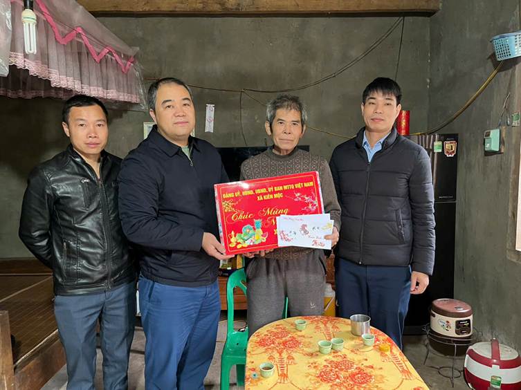 Ngày 11/02/2026, Đoàn công tác của UBND xã Kiên Mộc do đồng Chí Hoàng Văn Hội – Phó Bí thư Đảng uỷ, Chủ tịch UBND xã làm trưởng đoàn đã đến thăm hỏi, tặng quà gia đình đồng chí Phan Văn Miên, thôn Bản Có - Nguyên Bí thư Đảng uỷ và đồng chí Nông Xuân Hưng, thôn Bản Phục - Nguyên Chủ tịch UBND xã nhân dịp Tết Bính Ngọ 2026.
