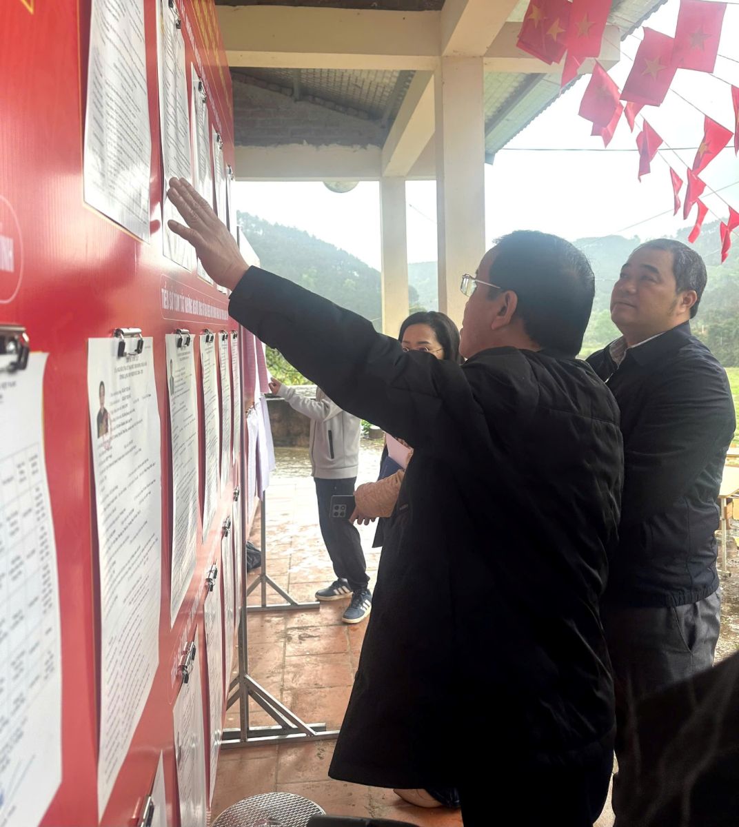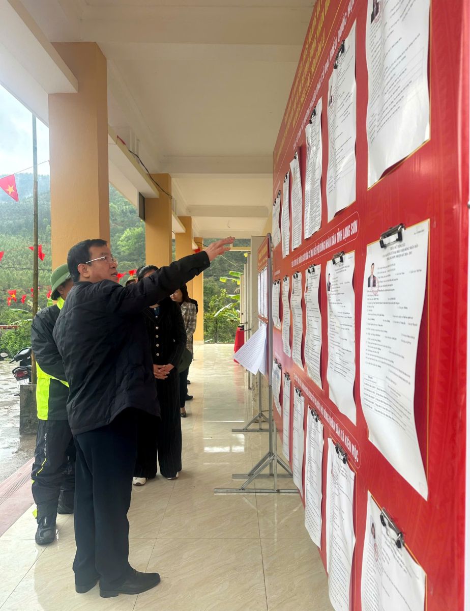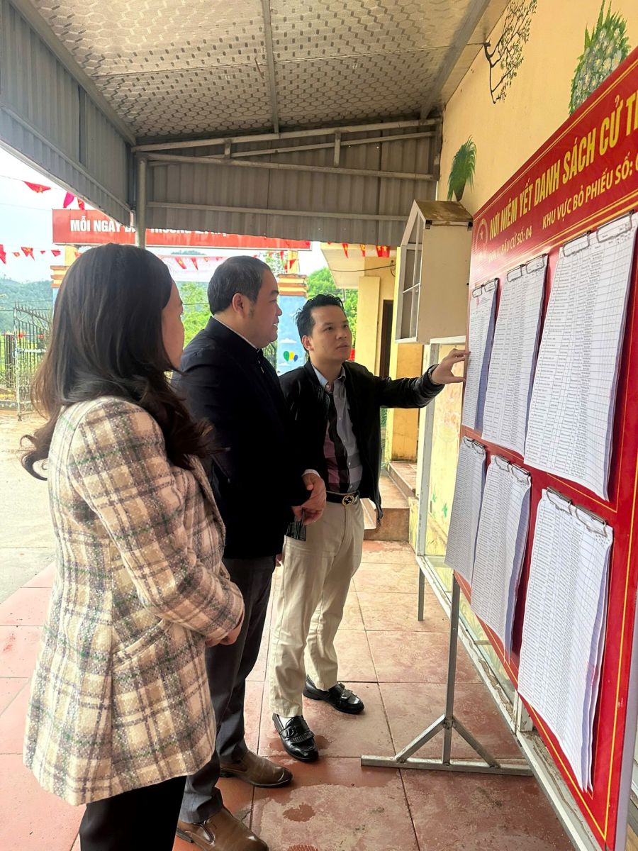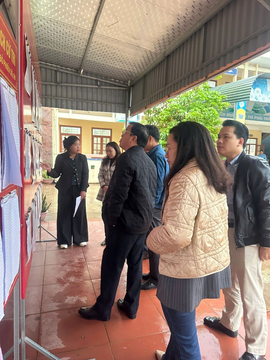 Đoàn công tác kiểm tra các điểm bỏ phiếu trên địa bàn xã