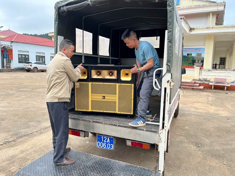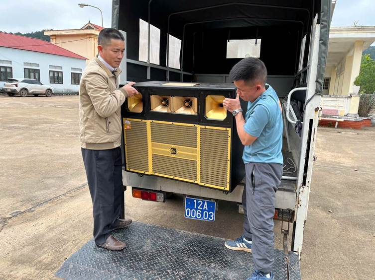 Trung tâm dịch vụ Công ích xã chuẩn bị loa và đi tuyên truyền lưu động
