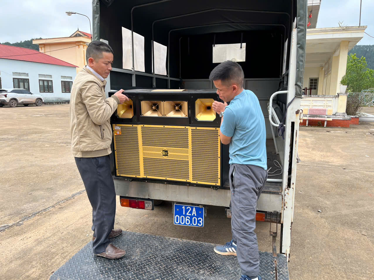 Lãnh đạo HĐND và Trung tâm Dịch vụ công ích xã Kiên Mộc chuẩn bị điều kiện và đi tuyên truyền lưu động