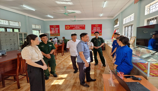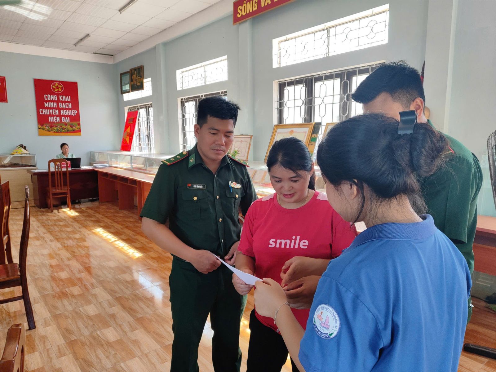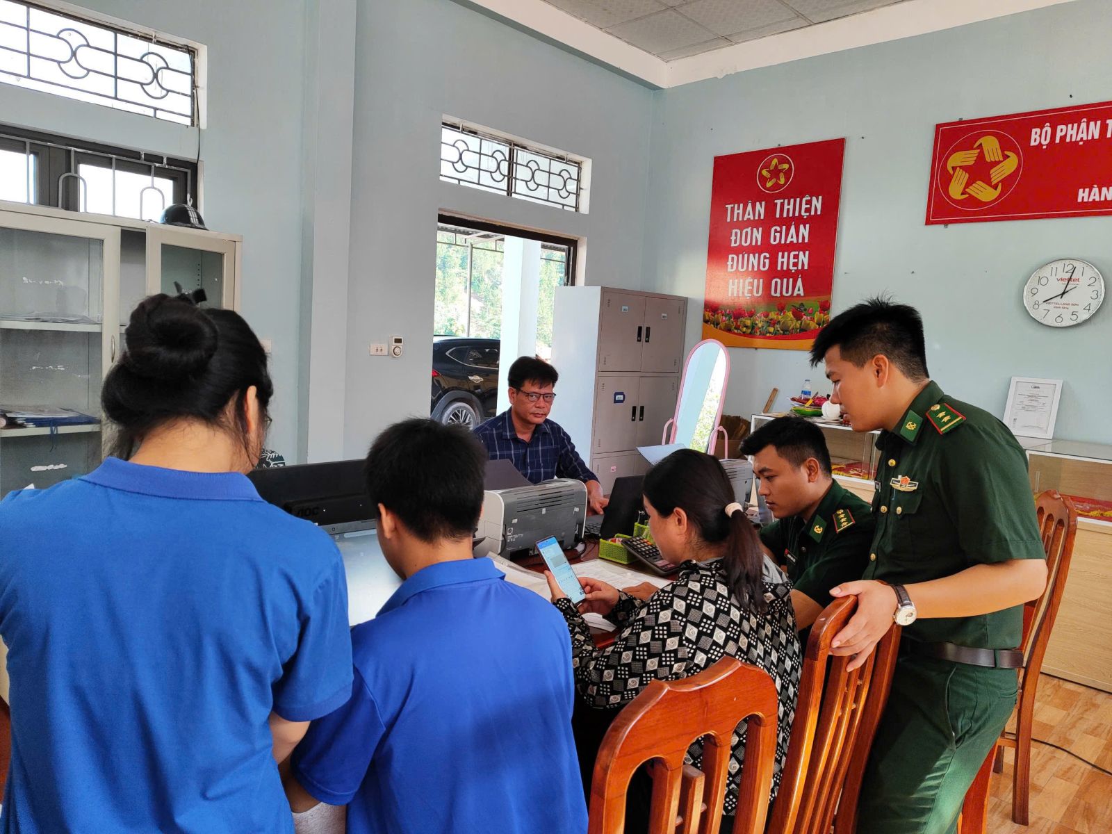 (Đồn biên phòng và Đoàn viên thanh niên hỗ trợ người dân cài đặt ứng dụng VNeID và Cổng dịch vụ công).