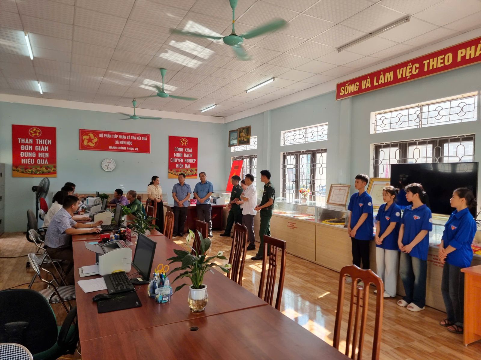 (Cán bộ xã hướng dẫn người dân sử dụng dịch vụ công trực tuyến)