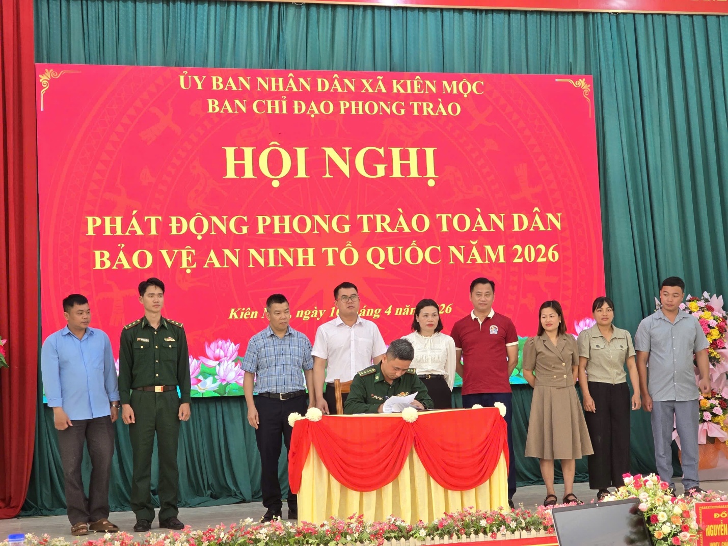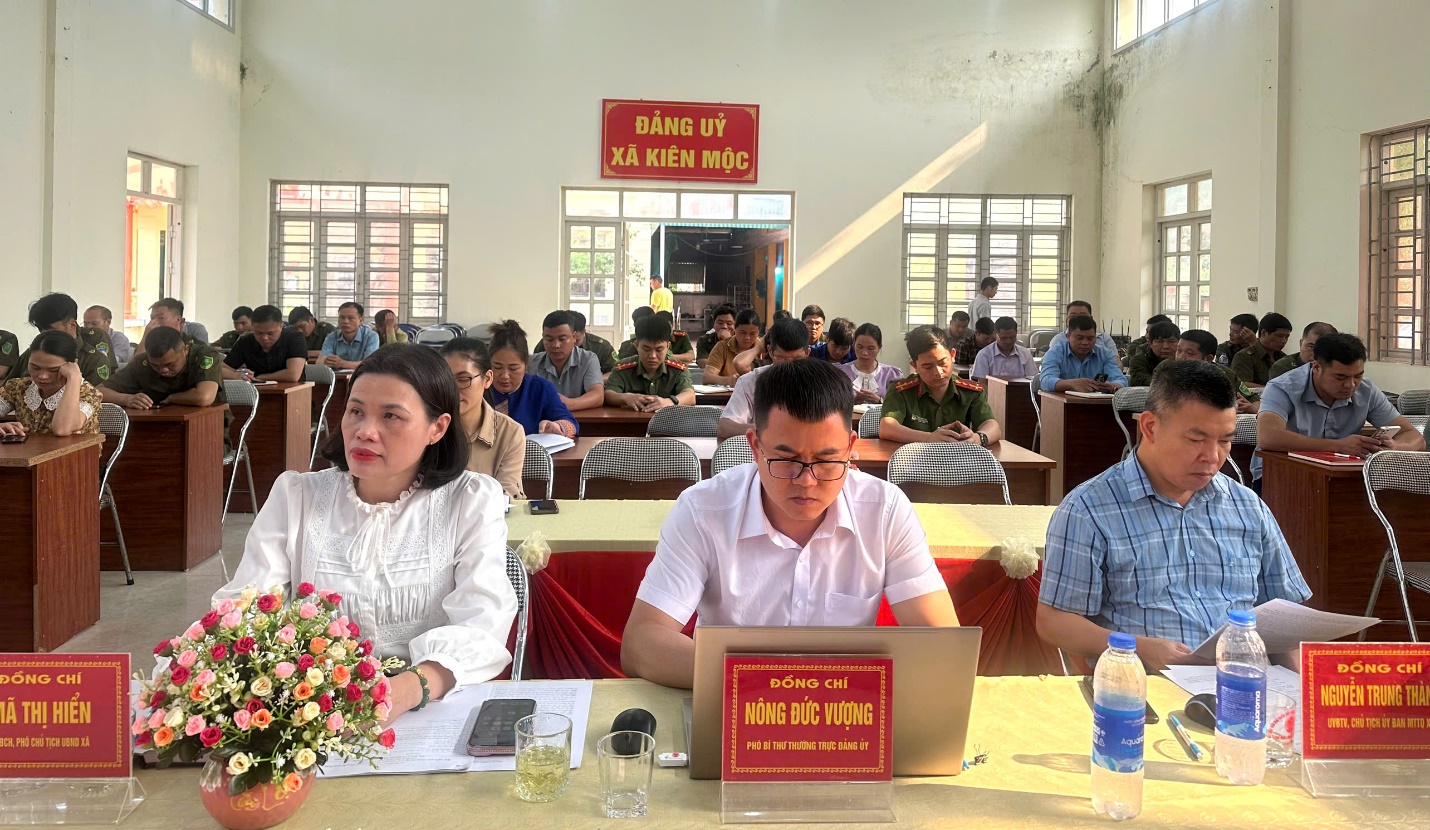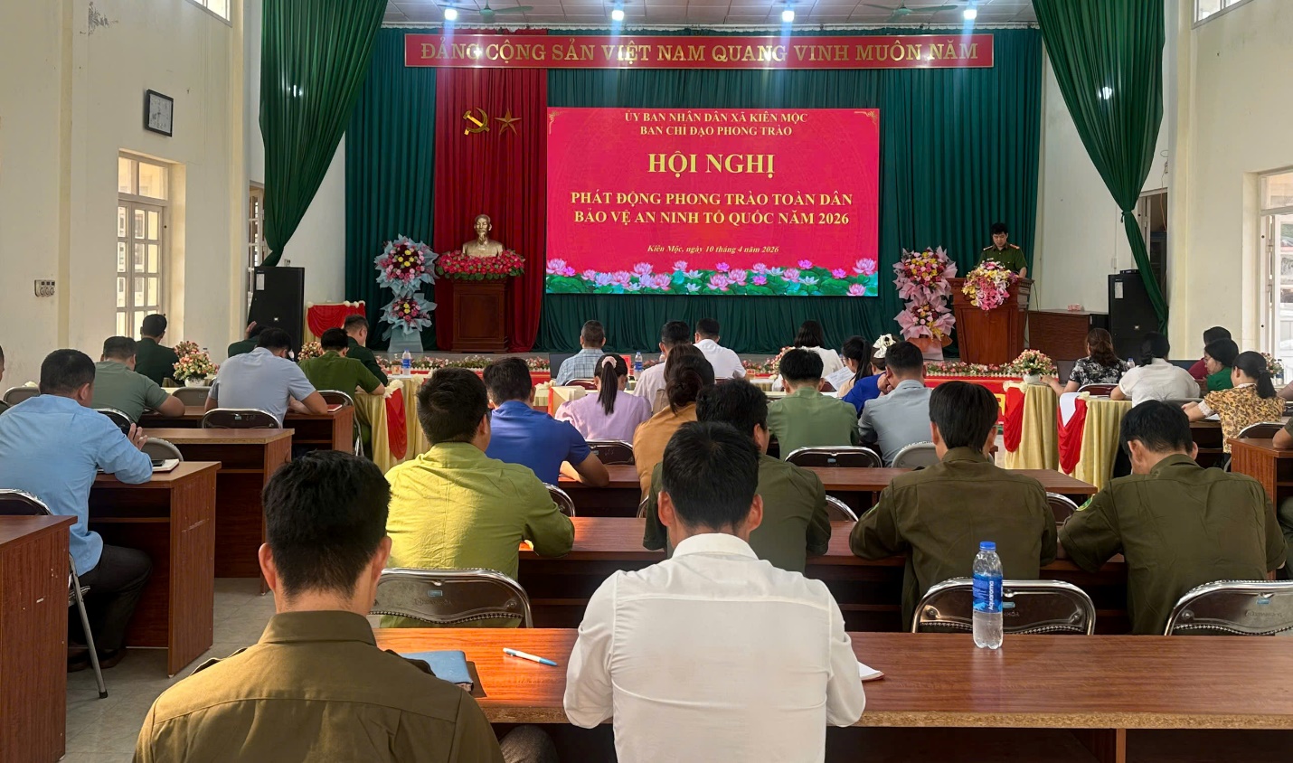 Ngày 10/4/2026, xã Kiên Mộc tổ chức hội nghị phát động phong trào “Toàn dân bảo vệ an ninh Tổ quốc” năm 2026. Tham dự hội nghị có đồng chí Nông Đức Vượng – Phó bí thư Thường trực Đảng ủy xã; đồng chí Mã Thị Hiển – Phó chủ tịch UBND xã; lãnh đạo Đảng ủy, HĐND, UBND, Ủy ban MTTQ Việt Nam xã; các ban, ngành, đoàn thể, đơn vị lực lượng vũ trang đứng chân trên địa bàn cùng lực lượng làm công tác an ninh trật tự ở cơ sở.