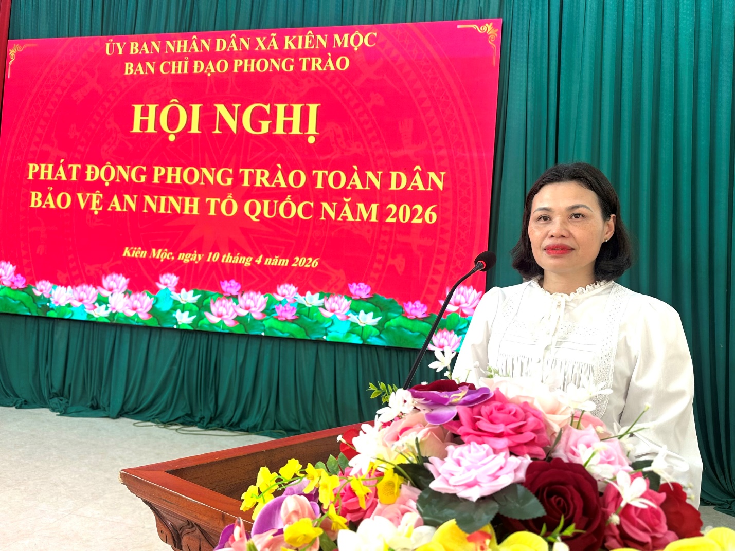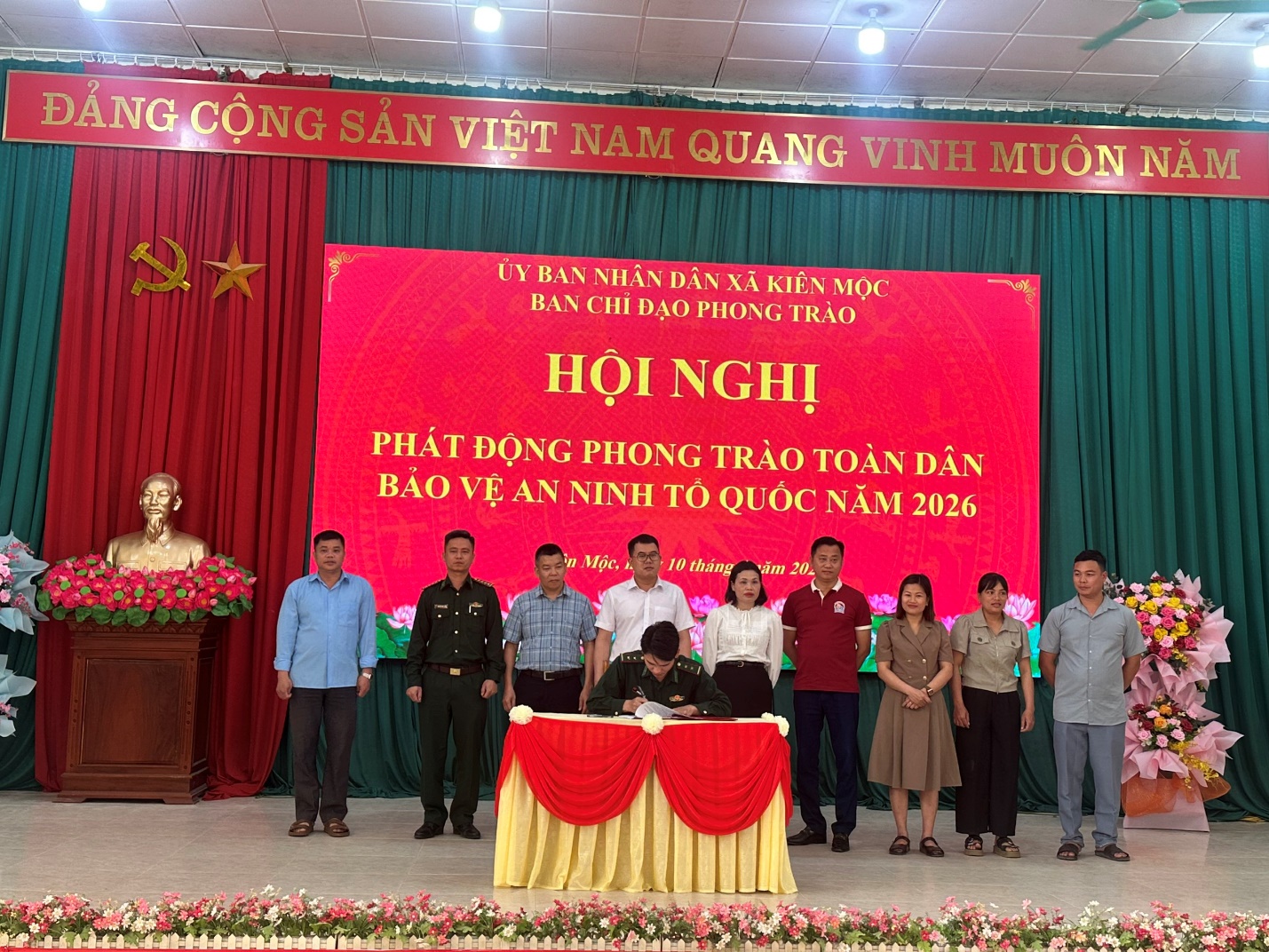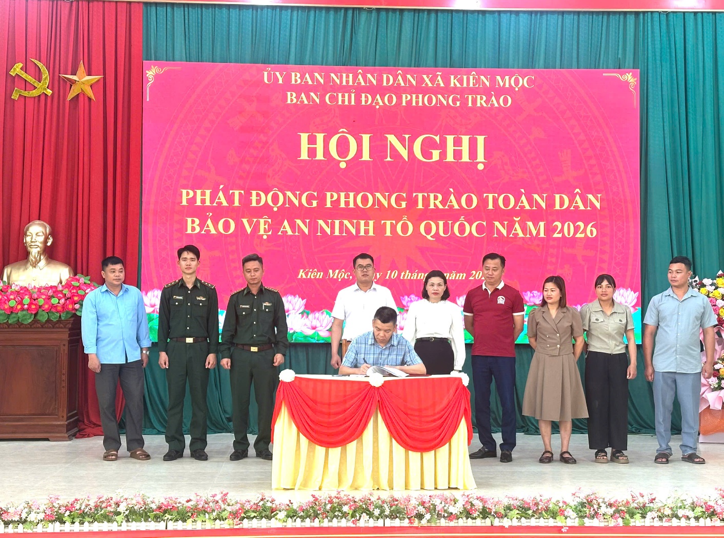 Ngày 10/4/2026, xã Kiên Mộc tổ chức hội nghị phát động phong trào “Toàn dân bảo vệ an ninh Tổ quốc” năm 2026. Tham dự hội nghị có đồng chí Nông Đức Vượng – Phó bí thư Thường trực Đảng ủy xã; đồng chí Mã Thị Hiển – Phó chủ tịch UBND xã; lãnh đạo Đảng ủy, HĐND, UBND, Ủy ban MTTQ Việt Nam xã; các ban, ngành, đoàn thể, đơn vị lực lượng vũ trang đứng chân trên địa bàn cùng lực lượng làm công tác an ninh trật tự ở cơ sở.
