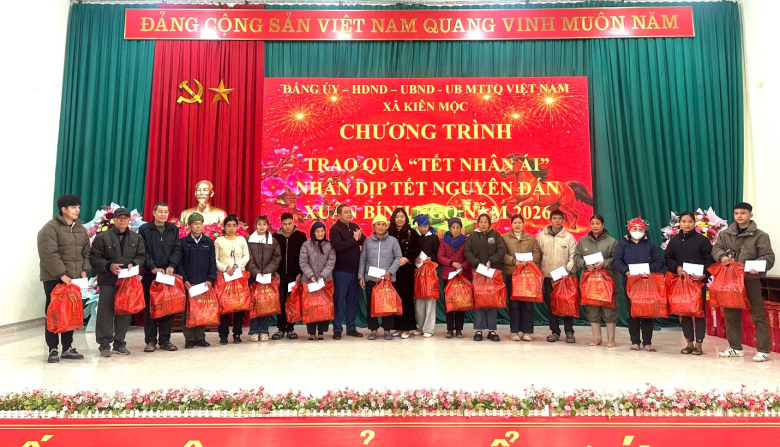Chiều ngày 11/02/2026, UBND xã Kiên Mộc phối hợp với Ủy ban MTTQ Việt Nam xã tổ chức Chương trình trao quà “Tết Nhân ái” nhân dịp đón Xuân Bính Ngọ năm 2026 trên địa bàn xã Kiên Mộc. Dự chương trình có đồng chí Hoàng Thị Kim Hoạt, Bí thư Đảng uỷ - Chủ tịch HĐND xã; các đồng chí lãnh đạo thường trực Đảng uỷ, HĐND, UBND, Uỷ ban MTTQ Việt Nam xã; đại diện lãnh đạo các phòng chuyên môn.