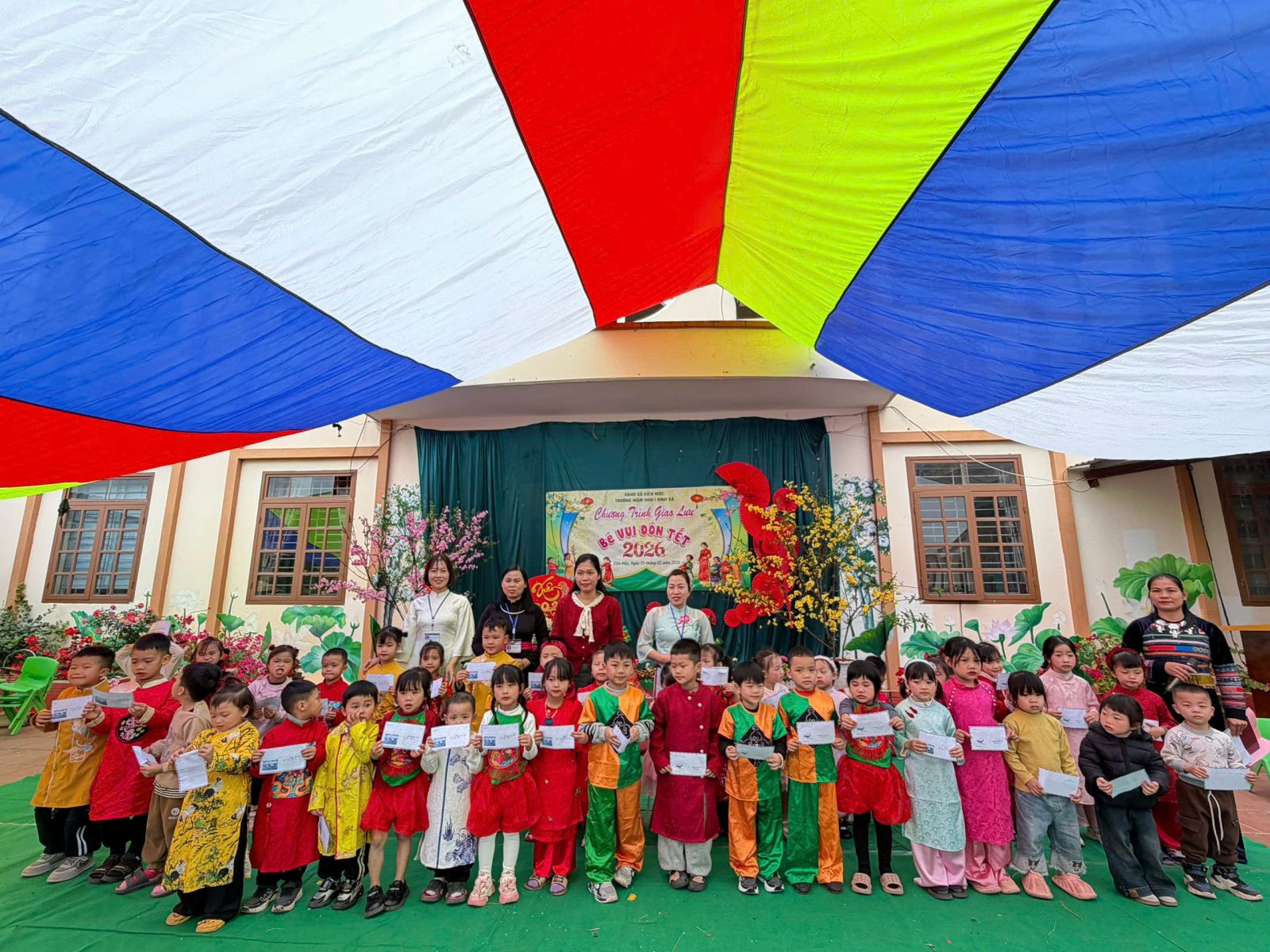 Bên cạnh đó, Nhân dịp Tết Nguyên đán Bính Ngọ năm 2026, hưởng ứng phong trào “Tết nhân ái”, nhà trường phối hợp với nhà cung cấp thực phẩm đã trao 06 phần quà Tết ý nghĩa đến các bé, gửi gắm lời chúc một năm mới bình an, hạnh phúc. Những món quà tuy nhỏ nhưng mang đậm tình yêu thương, sự quan tâm, sẻ chia của tập thể CB, GV, NV nhà trường, các đơn vị, các nhà hảo tâm dành cho các bé.