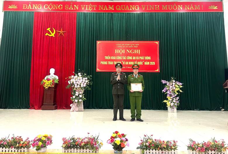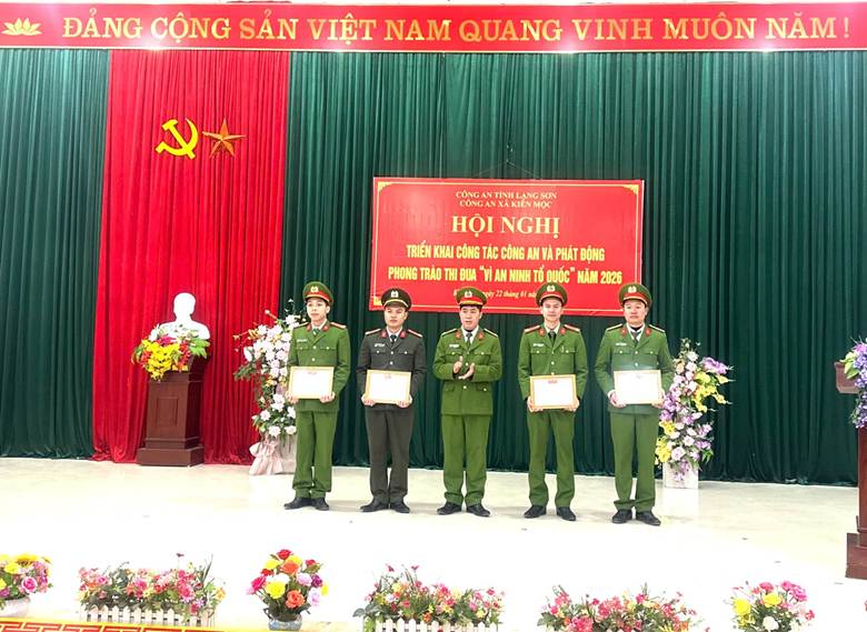Với những kết quả đã đạt được trong năm 2025, tập thể Công an xã Kiên Mộc đã vinh dự được Bộ công an tặng bằng khen vì đã có thành tích xuất sắc trong phong trào thi đua “ Vì an ninh bảo vệ Tổ quốc” giai đoạn 2023- 2024 góp phần bảo vệ an ninh quốc gia. Nhân dip này, Công an tỉnh Lạng Sơn tặng danh hiệu Đơn vị quyết thắng cho Tập thể công an xã Kiên Mộc, 05 đồng chí được nhận danh hiệu chiến sỹ thi đua cơ sở./.