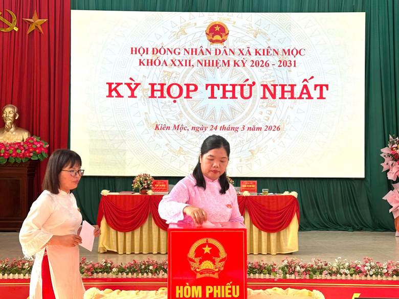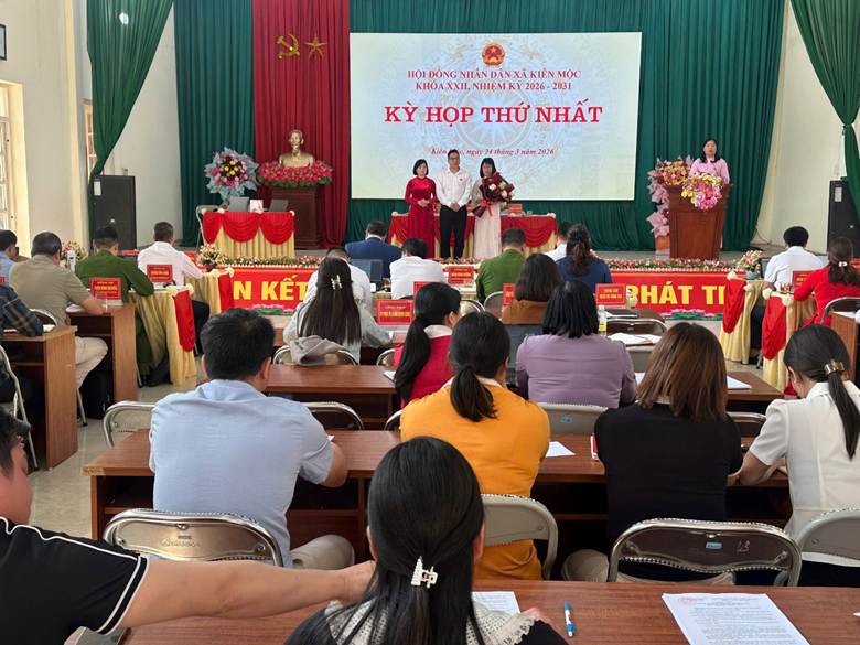 Ngày 24/3/2026, HĐND xã Kiên Mộc tổ chức kỳ họp thứ Nhất HĐND xã khóa XXII, nhiệm kỳ 2026 – 2031. Đây là kỳ họp có ý nghĩa đặc biệt quan trọng, quyết định việc kiện toàn tổ chức bộ máy và định hướng hoạt động của xã trong cả nhiệm kỳ. Đồng chí Hoàng Thị Kim Hoạt – Bí thư Đảng ủy, Đại biểu HĐND tỉnh và Đồng chí Nông Thị Ngọc – phó chủ tịch HĐND xã chủ trì hội nghị. Tham dự kỳ họp có các đồng chí Thường trực HĐND, UBND, Ủy ban MTTQ, lãnh đạo các ban ngành, đoàn thể, các đơn vị lượng vũ trang đứng chân trên địa bàn, các cơ quan, đơn vị; Bí thư chi bộ, Trưởng các thôn và 18 đại biểu HĐND xã khóa XXII.