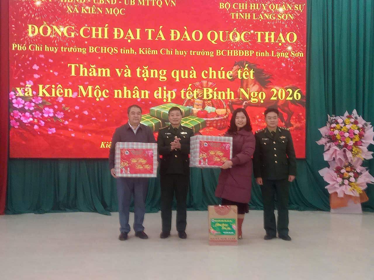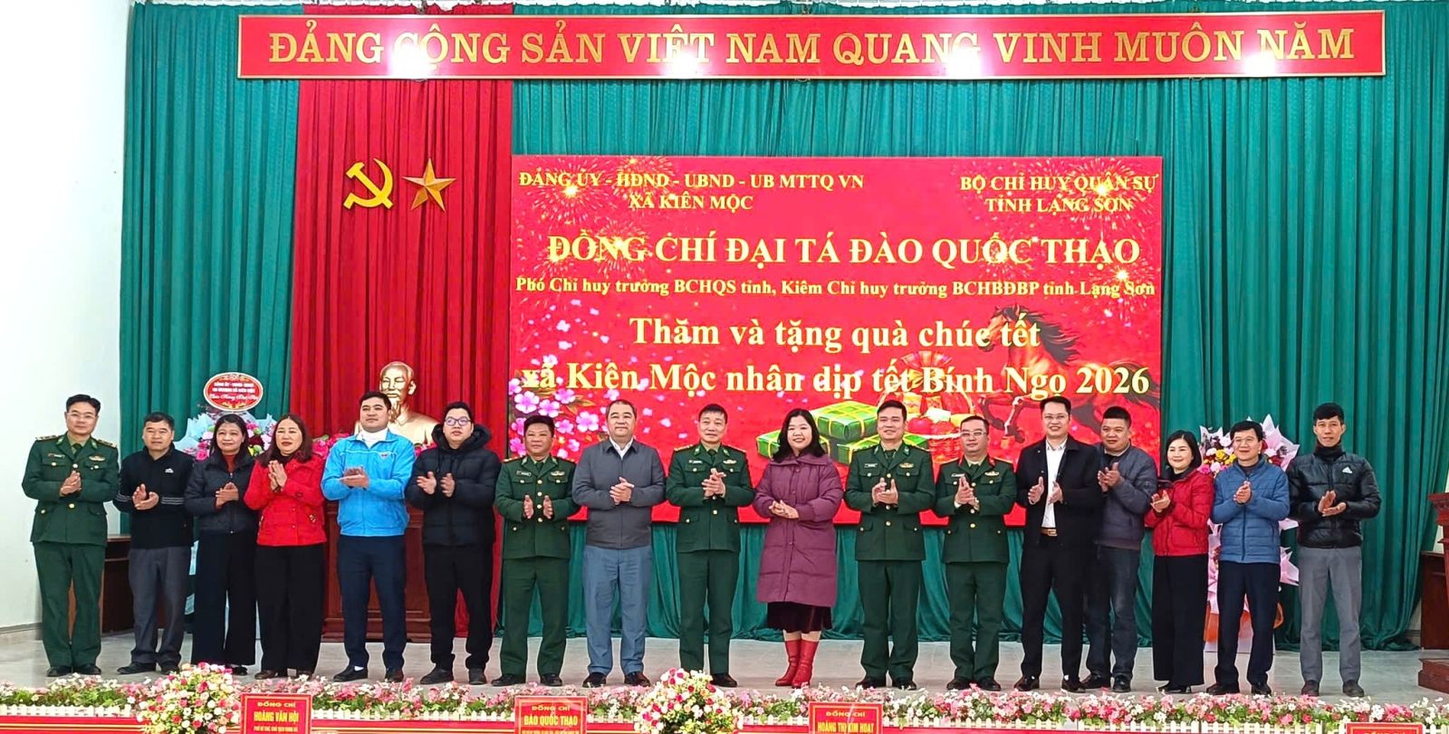 Ngày 02/02/2026, Đoàn công tác của Ban chỉ huy Bộ đội Biên phòng tỉnh Lạng Sơn do Đại tá Đoàn Quốc Thạo – Phó Chỉ huy trưởng Bộ Chỉ huy Quân sự tỉnh, kiêm Chỉ huy trưởng Ban Chỉ huy Bộ đội Biên phòng tỉnh Lạng Sơn làm trưởng đoàn đã đến thăm, tặng quà và chúc Tết xã Kiên Mộc nhân dịp Xuân Bính Ngọ 2026. Tiếp và làm việc với đoàn công tác về phía xã có đồng chí Hoàng Thị Kim Hoạt – Bí thư Đảng uỷ, Chủ tịch HĐND xã, đồng chí Hoàng Văn Hội – Phó bí thư Đảng uỷ, Chủ tịch UBND xã.