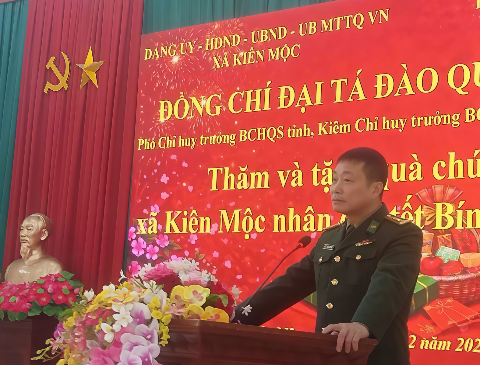 Tại buổi đến thăm, đồng chí Phó Chỉ huy trưởng Bộ Chỉ huy Quân sự tỉnh, kiêm Chỉ huy trưởng Ban Chỉ huy Bộ đội Biên phòng tỉnh Lạng Sơn đã trao 02 xuất quà cho Đảng uỷ và chính quyền xã Kiên Mộc. Đồng thời, đồng chí cũng ân cần thăm hỏi sức khỏe, đời sống của các đồng chí lãnh đạo Đảng uỷ, chính quyền, cán bộ, công chức, viên chức và nhân dân trên địa bàn xã Kiên Mộc, đồng thời ghi nhận và đánh giá cao những nỗ lực của cấp ủy, chính quyền và Nhân dân xã Kiên Mộc trong phát triển kinh tế – xã hội, giữ vững quốc phòng – an ninh trong thời gian qua. Đồng chí mong muốn xã Kiên Mộc tiếp tục nỗ lực vươn lên trong công việc, trong cuộc sống, phấn đấu hoàn thành xuất sắc mọi nhiệm vụ được giao, góp phần xây dựng quê hương Kiên Mộc ngày càng văn minh, giài đẹp và đón Tết cổ truyền trong không khí ấm áp, an vui và nghĩa tình.