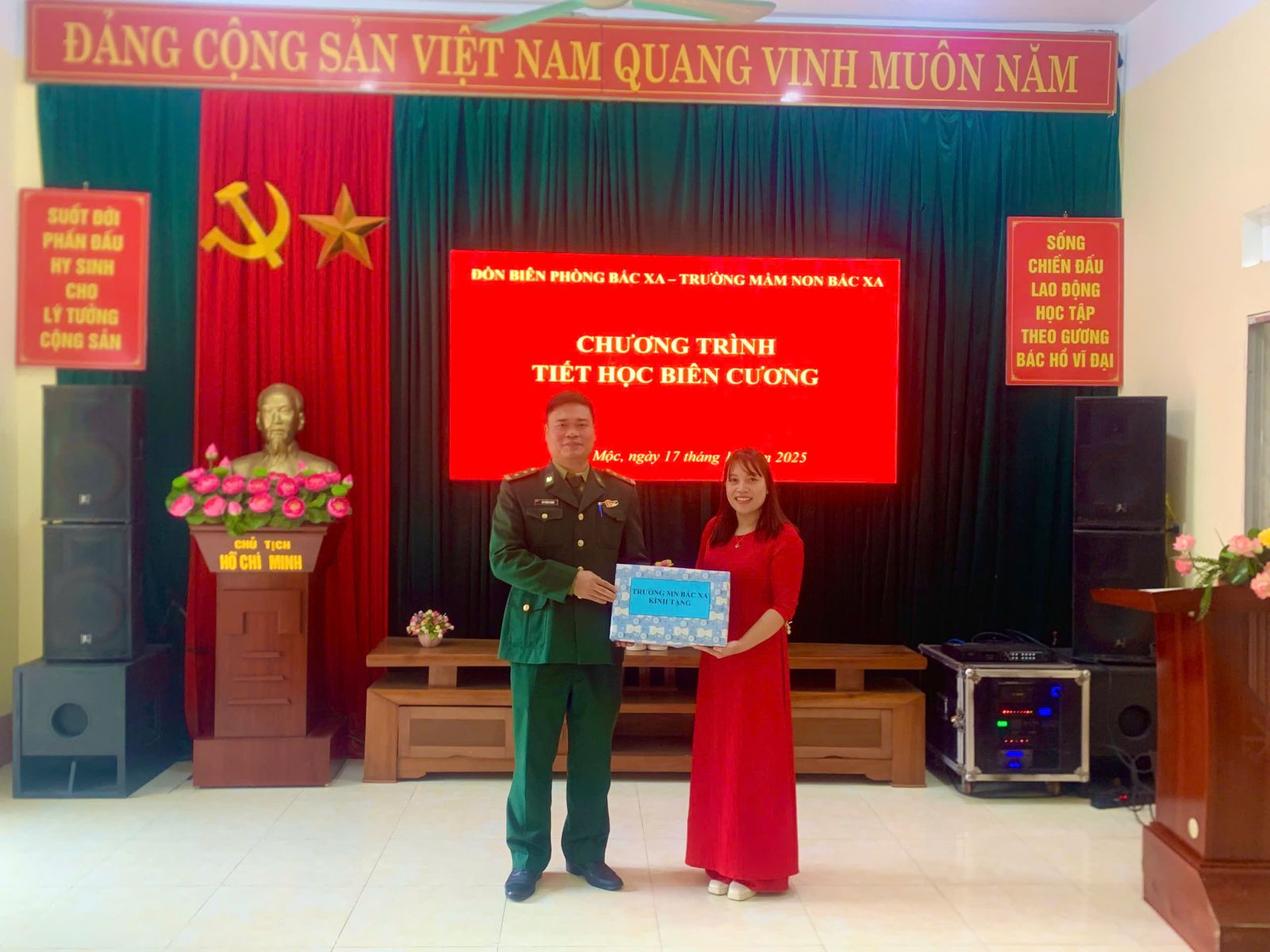 - Ban Giám hiệu nhà trường phát biểu chúc mừng, tặng quà Đồn Biên phòng Bắc Xa và chụp ảnh lưu niệm;
