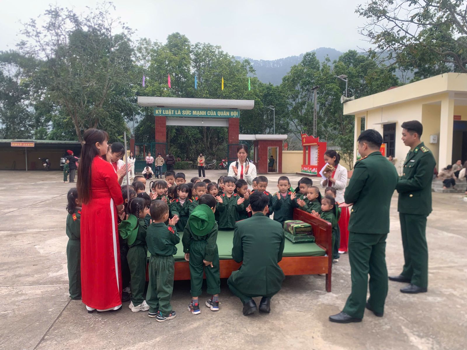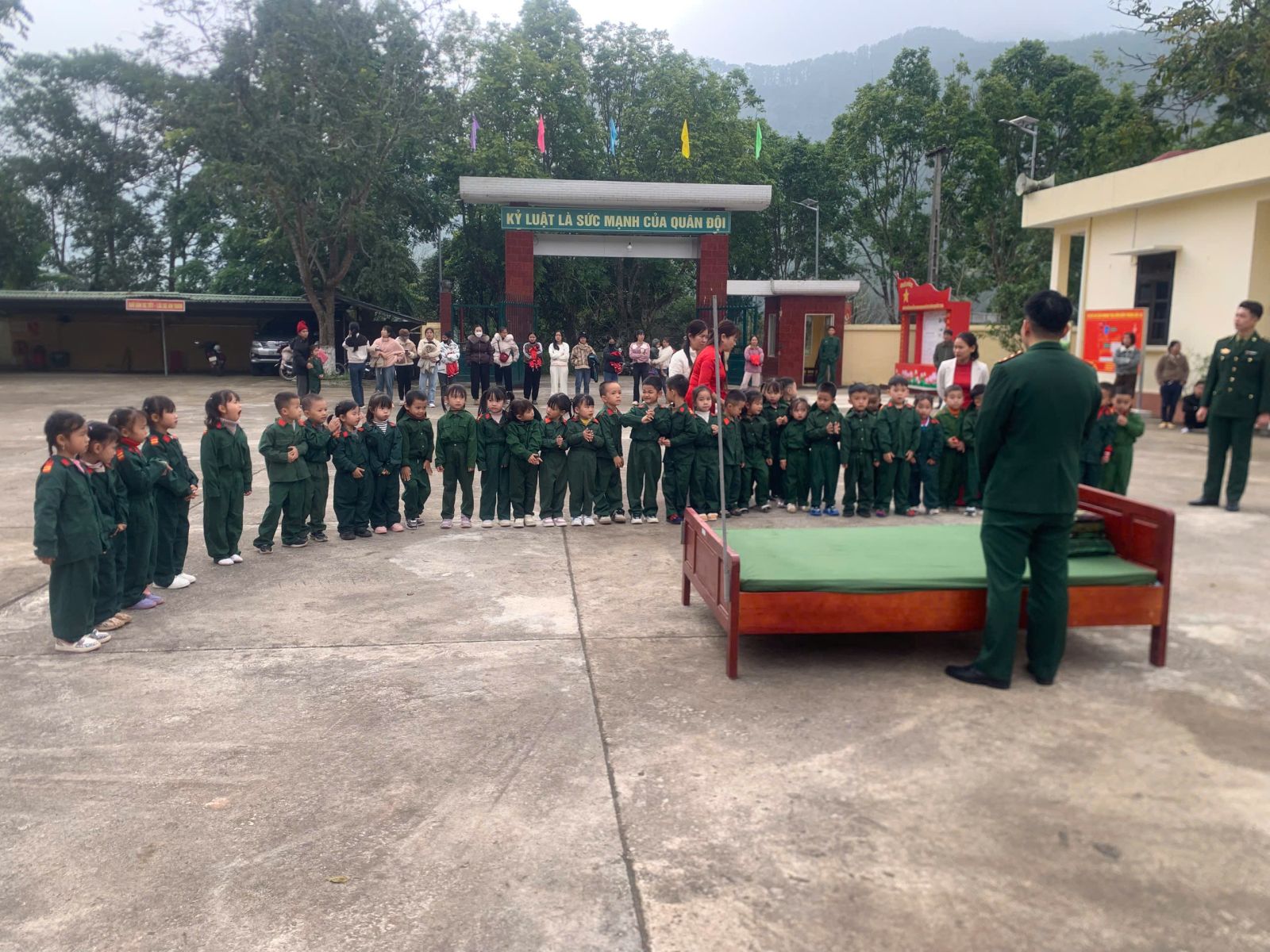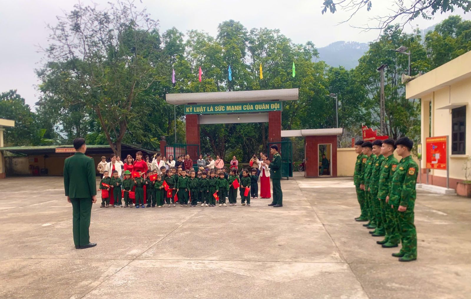 Thực hiện nhiệm vụ năm học 2025 – 2026 và kế hoạch tổ chức các hoạt động ngoại khóa, trải nghiệm cho trẻ mầm non trong tháng 12/2025, Trường Mầm non Bắc Xa đã phối hợp với Đồn Biên phòng Bắc Xa tổ chức “Tiết học biên cương” cho trẻ tham quan, trải nghiệm tại Đồn Biên phòng Bắc Xa.